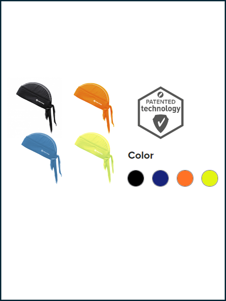 La Bandana Headcool INUTEQ-H2O® enfriará tu cabeza de forma rápida y cómoda. El efecto de enfriamiento durará de 2 a 8 horas dependiendo de la temperatura ambiente, el flujo de aire y la humedad.